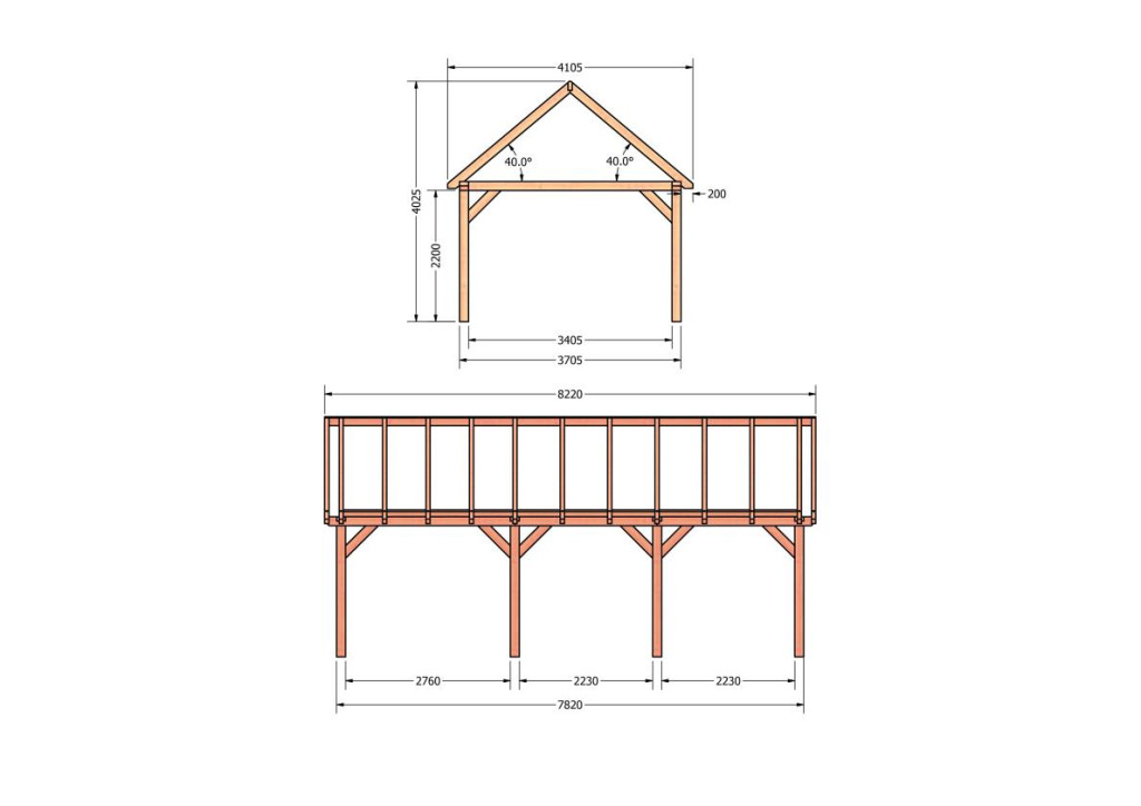 Constructiepakket zadeldak | 8220x4105x4030mm | fijnbezaagd Douglas