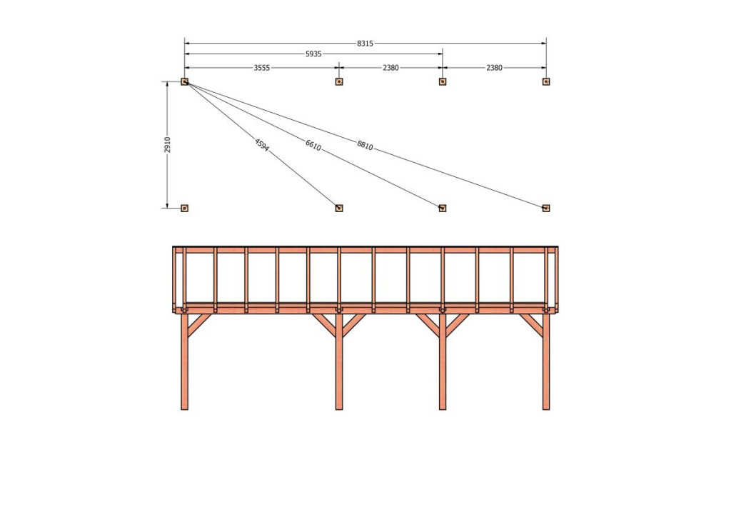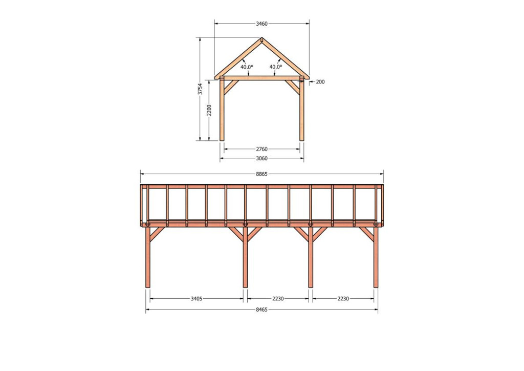 Constructiepakket zadeldak | 8865x3460x3760mm | fijnbezaagd Douglas
