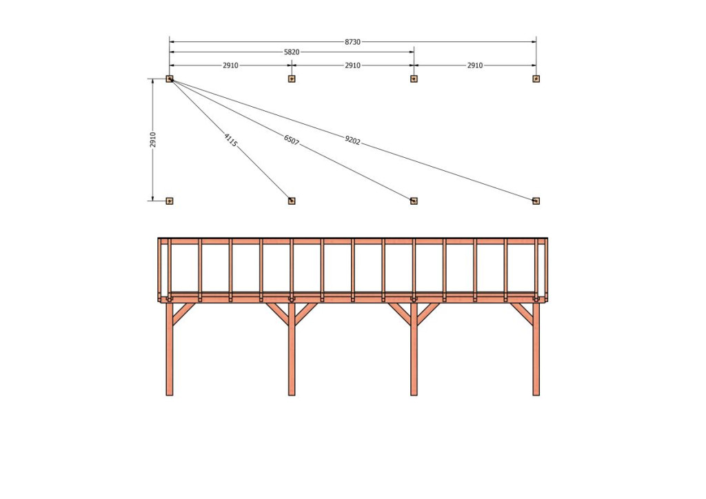 Constructiepakket zadeldak | 9280x3460x3760mm | fijnbezaagd Douglas