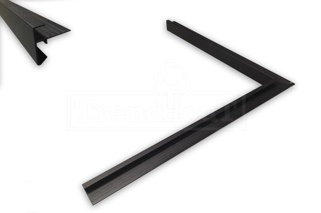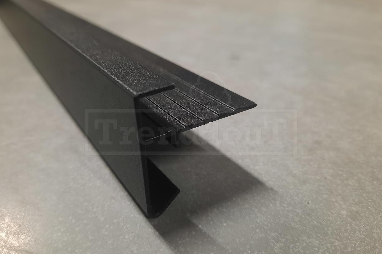 • Zwarte aluminium daktrimset recht 35x35mm t/m 39m1