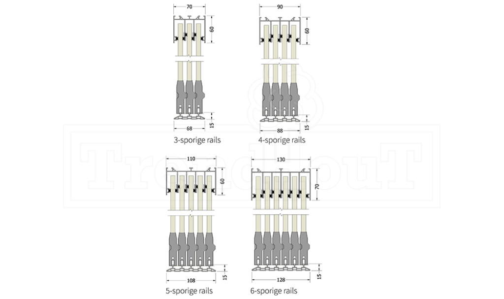 Glazen schuifwand, prijs per paneel 600-1100mm incl. rails, handgreep, 1 sporig aansluitprofiel