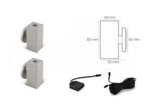 Led verlichting RVS wandlamp vierkant up/down set á 2 stuks incl. kabels