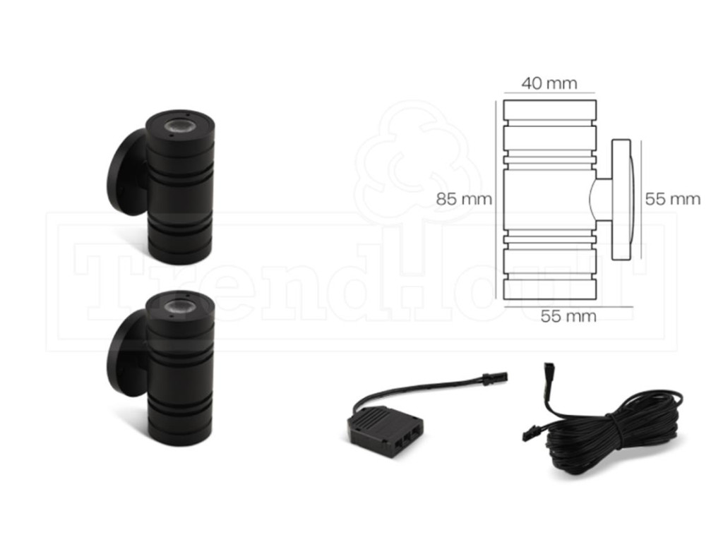 Led verlichting zwart wandlamp rond up/down set á 2 stuks incl. kabels