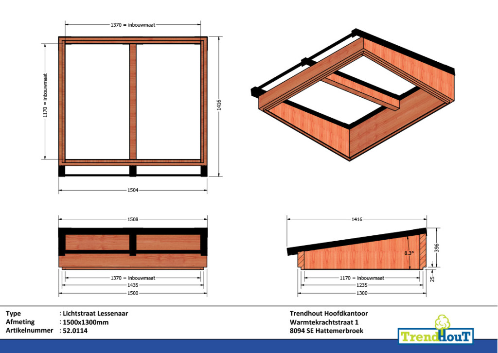 • Lichtstraat lessenaar 1500mm, 1300mm diep incl. gelaagd isolatieglas en profielen