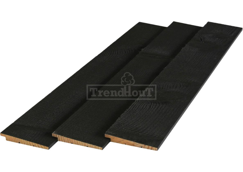 • Potdekselplanken douglas 10-20x145x3000mm zichtzijde fijnbezaagd, rondom zwart gespoten