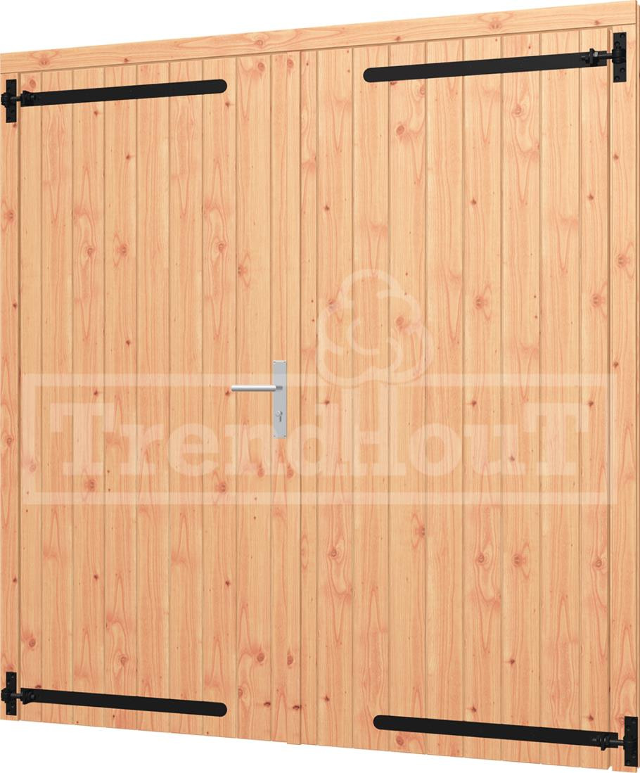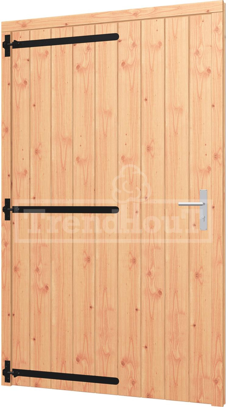 Een opgeklampte deur is een tijdloze en robuuste keuze voor elk tuinhuis. Deze deuren zijn herkenbaar aan hun stevige constructie, waarbij verticale planken aan de voorzijde met horizontale of diagonale klampen aan de achterzijde worden versterkt. Dit ontwerp levert niet alleen een klassieke uitstraling, maar biedt ook uitstekende bescherming tegen verschillende weersomstandigheden. Wij produceren onze douglas deuren in grote oplages, waardoor ze vaak direct uit voorraad leverbaar zijn!