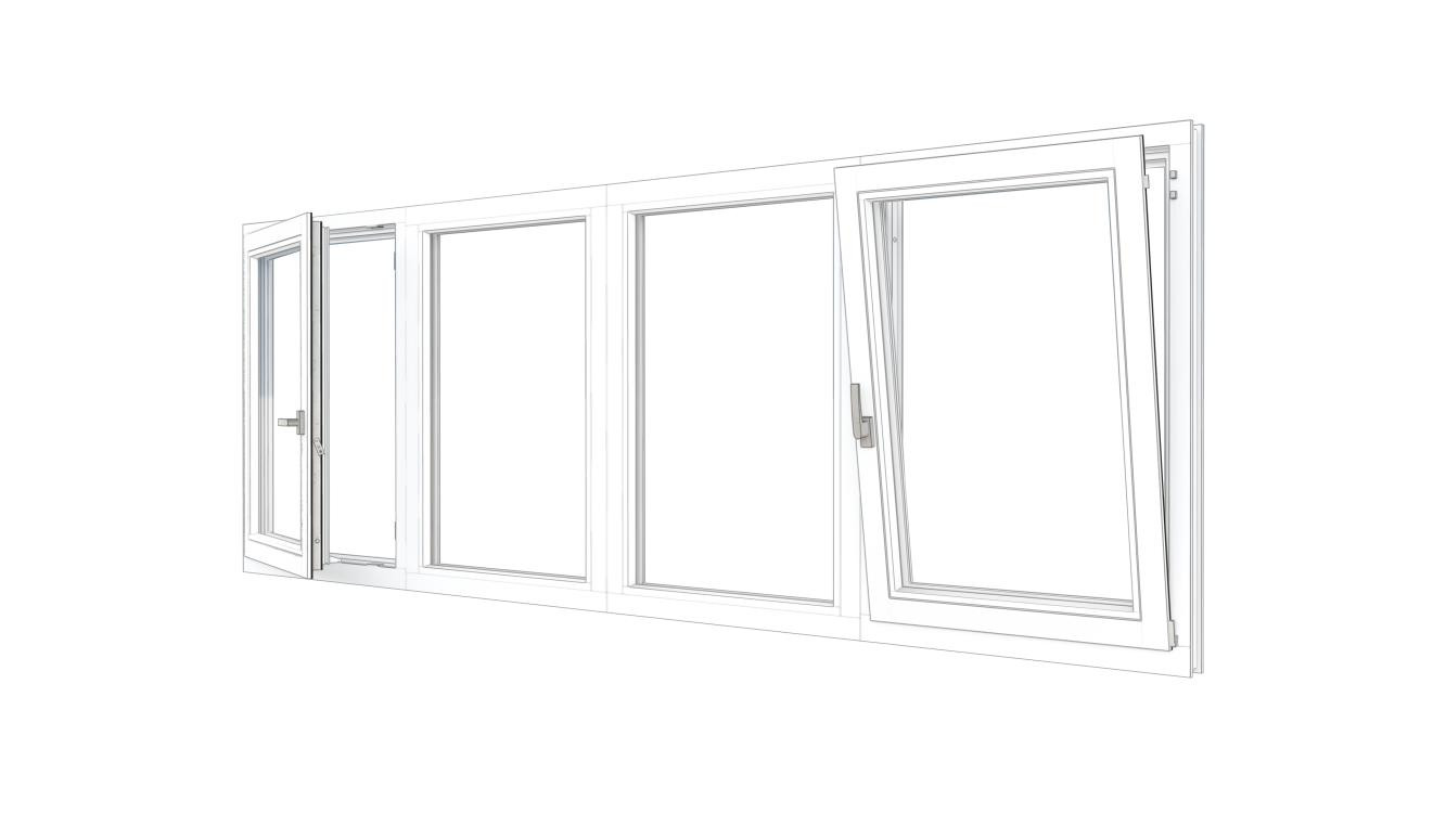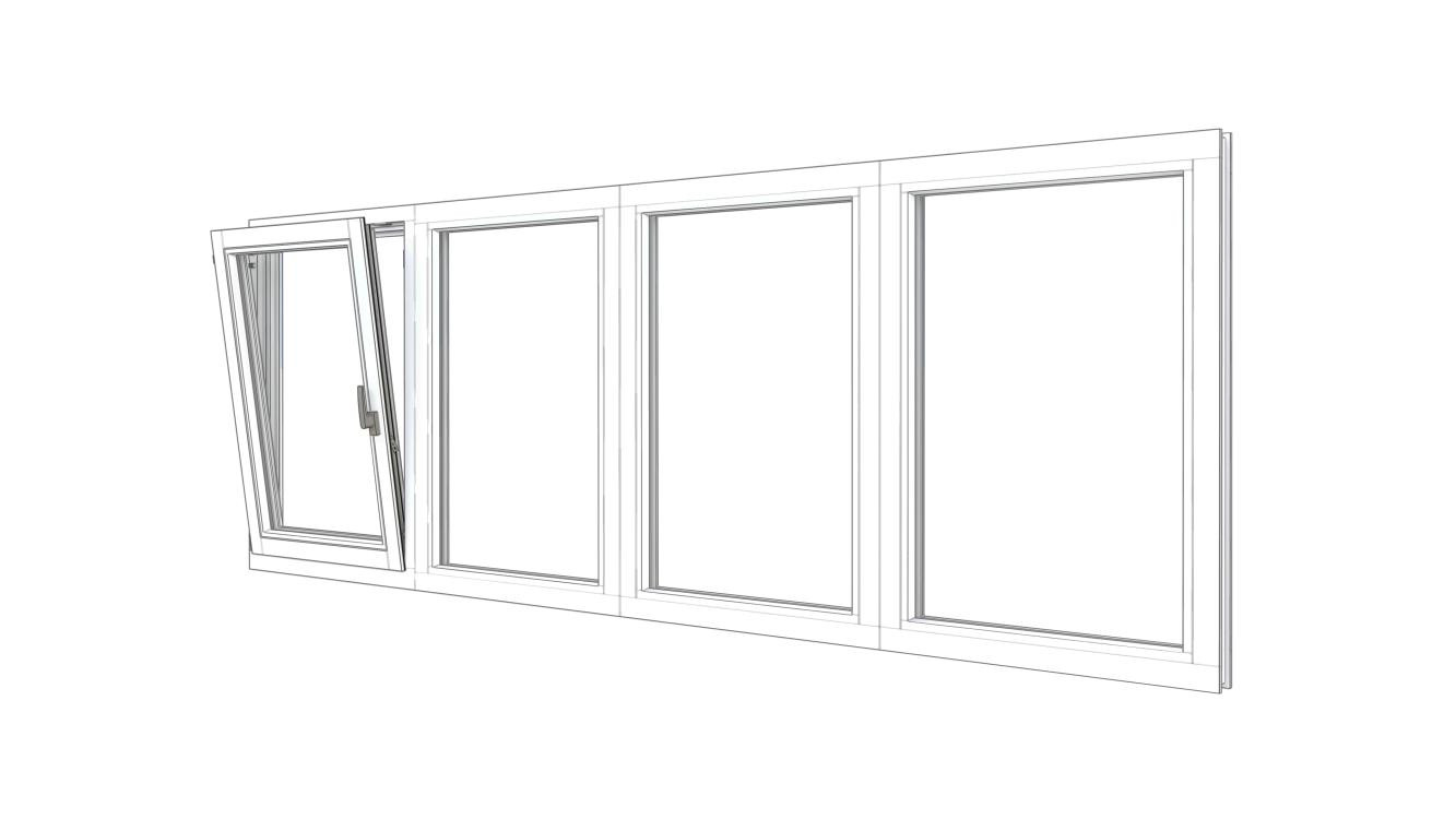 Combinatieset Meranti raamkozijn 3096x1374 - Wit - draai/kiep (LD) + 3x vast