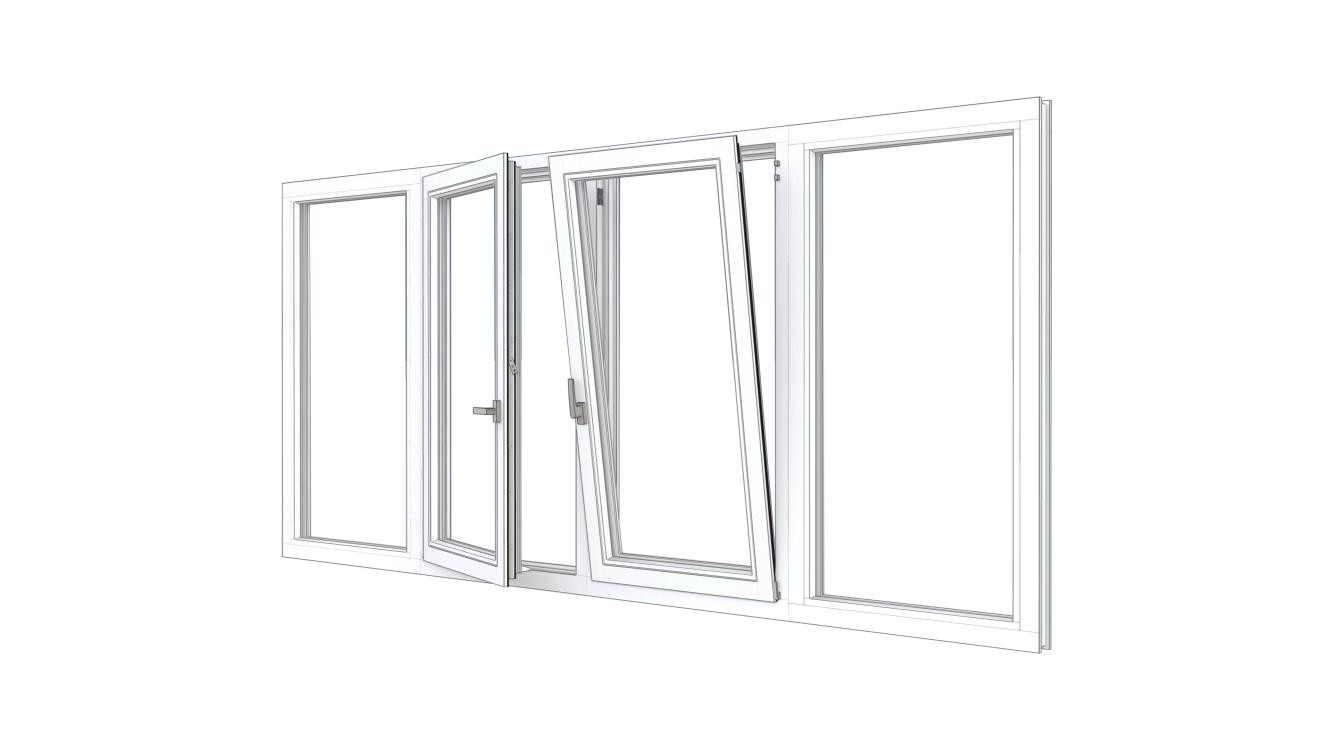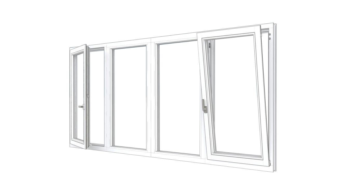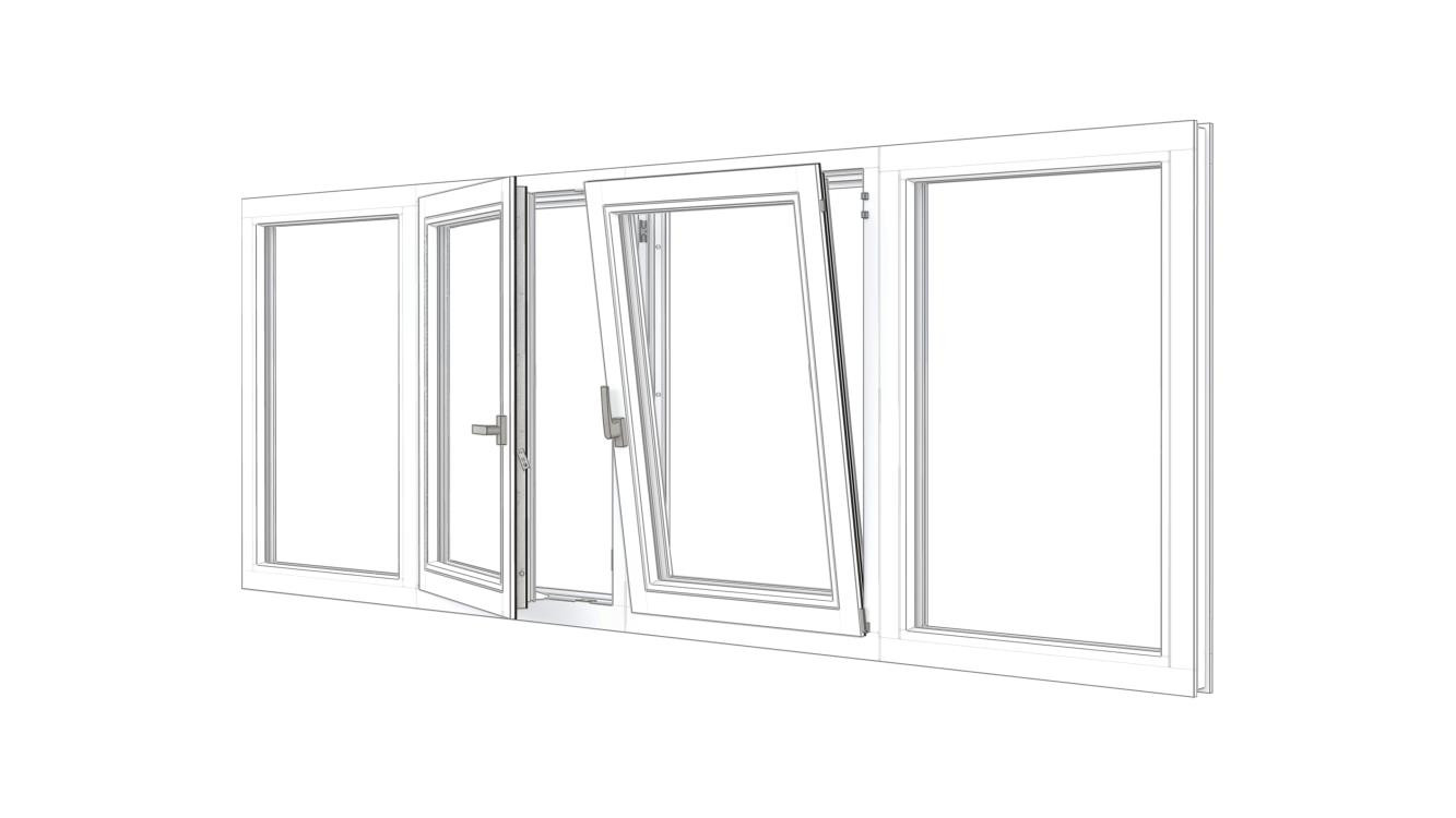 Combinatieset Meranti raamkozijn 3096x1074 - Wit - vast + 2x draai/kiep (LD+RD) + vast