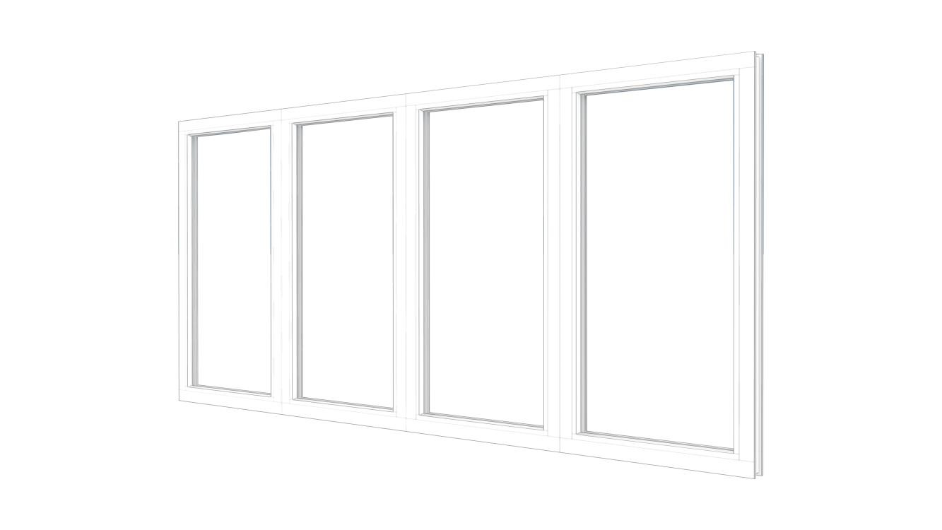 Combinatieset Meranti raamkozijn 3096x1374 - Wit - 3x vast + draai/kiep (RD)