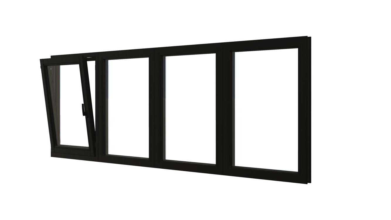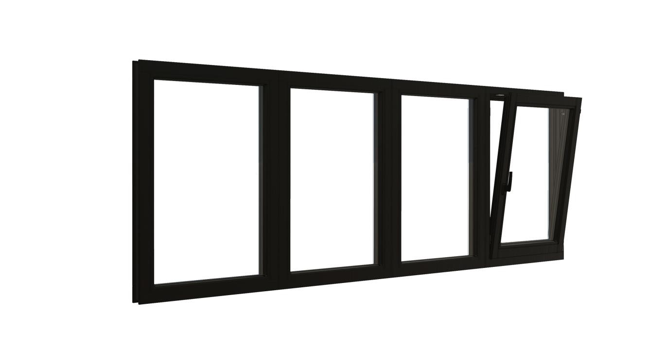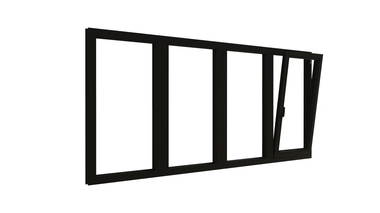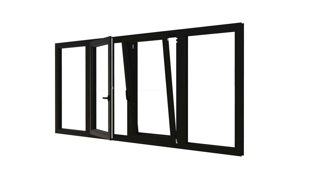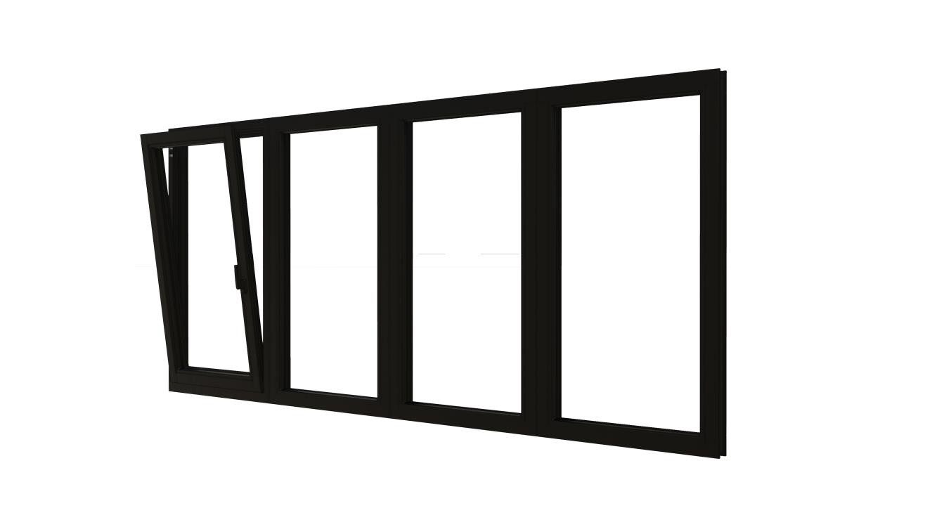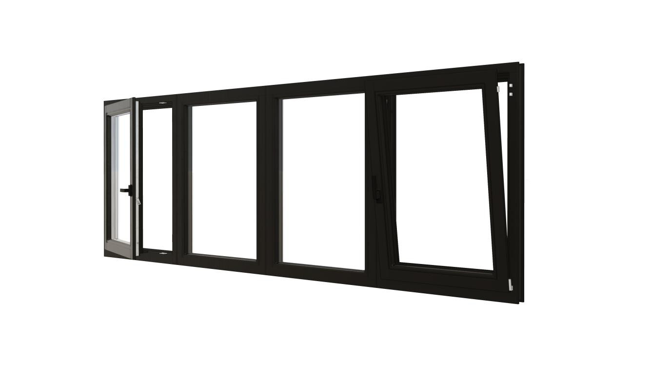 Combinatieset Meranti raamkozijn 3096x1374 - Zwart - 3x vast + draai/kiep (RD)