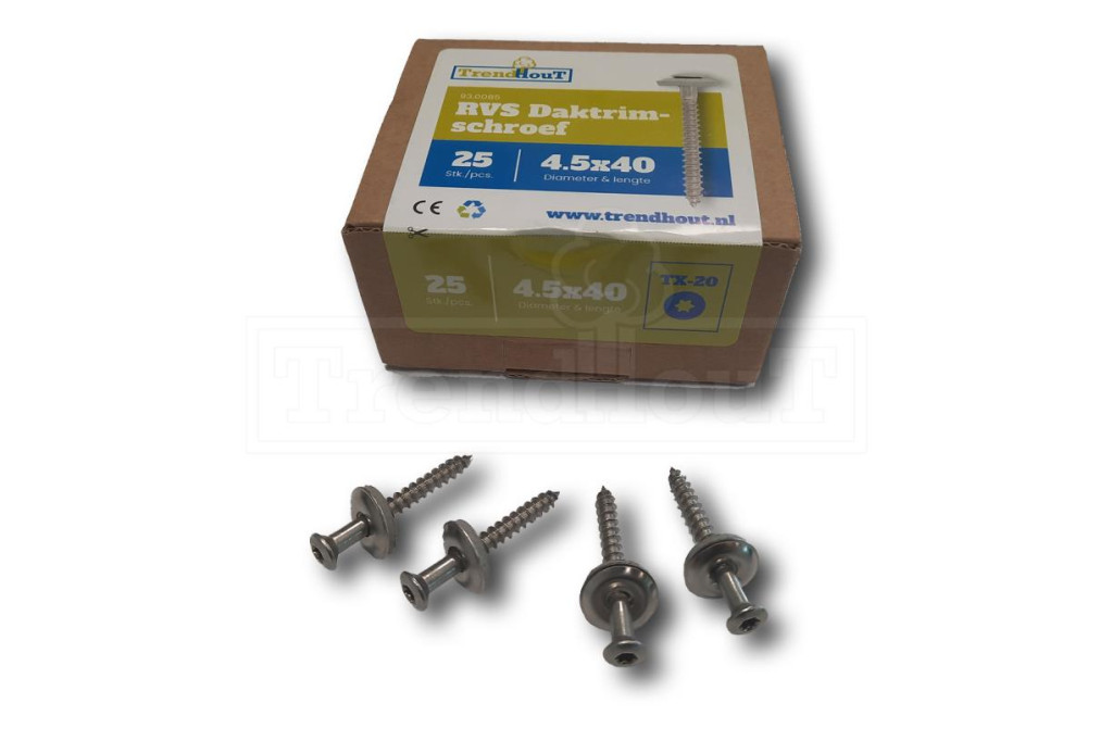 • RVS daktrimschroef 4,5x40 per 25 stuks
