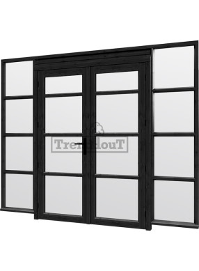 • Steel Look raam 2760x2200mm zwart module C-04 met dubbele openslaande deuren