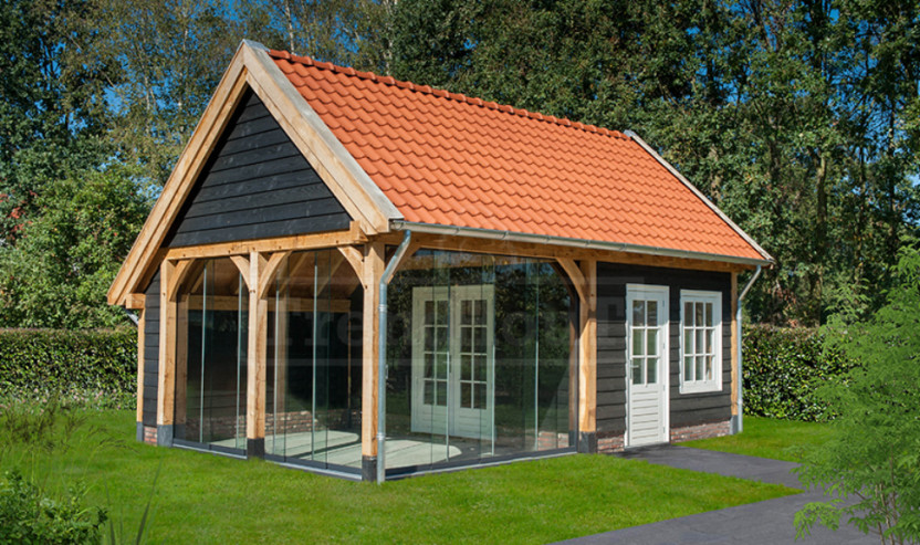 Trendhout produceert naast douglas kapschuren, ook veel bouwpakketten voor eiken kapschuren