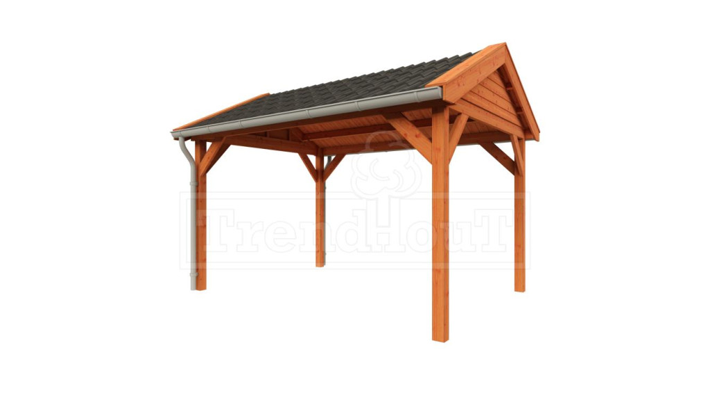Deze zadeldak is als bouwpakket samengesteld en het laten opbouwen door Trendhout is een optie.