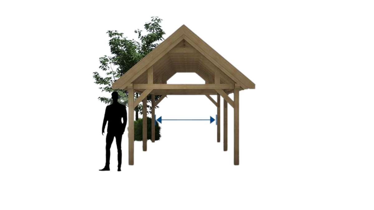 Met stevige staanders en ringbalken van 140×140 mm en een royale nokhoogte straalt De Delle kracht en stabiliteit uit. Het dakbeschot met sponningplanken en de premium afwerking van boeidelen versterken het hoogwaardige karakter van deze eiken schuur.