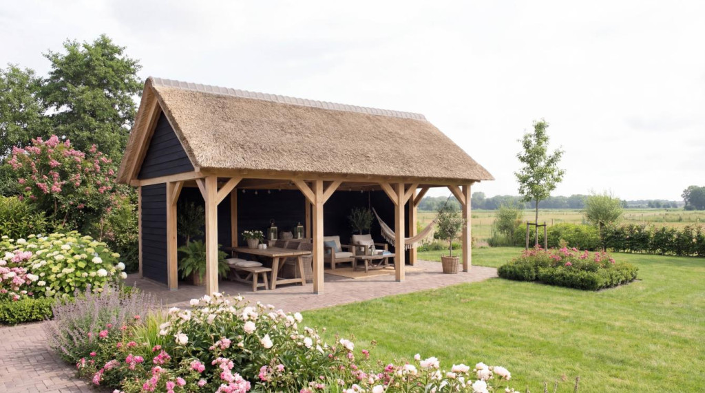 Trendhout buitenverblijf met zadeldak aanschaffen