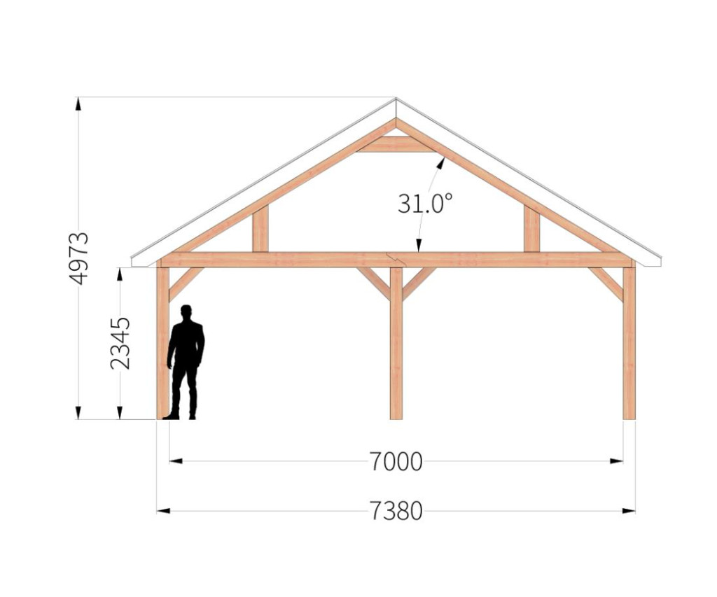 • Dakconstructie: gordingenkap met spanten & gordingen 65x240mm