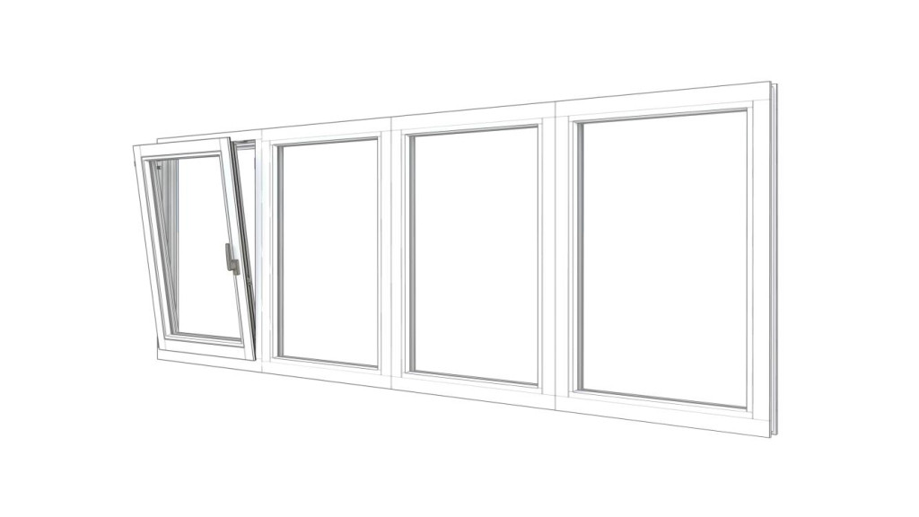 Combinatieset Meranti raamkozijn 3096x1074 - Wit - draai/kiep (LD) + 3x vast