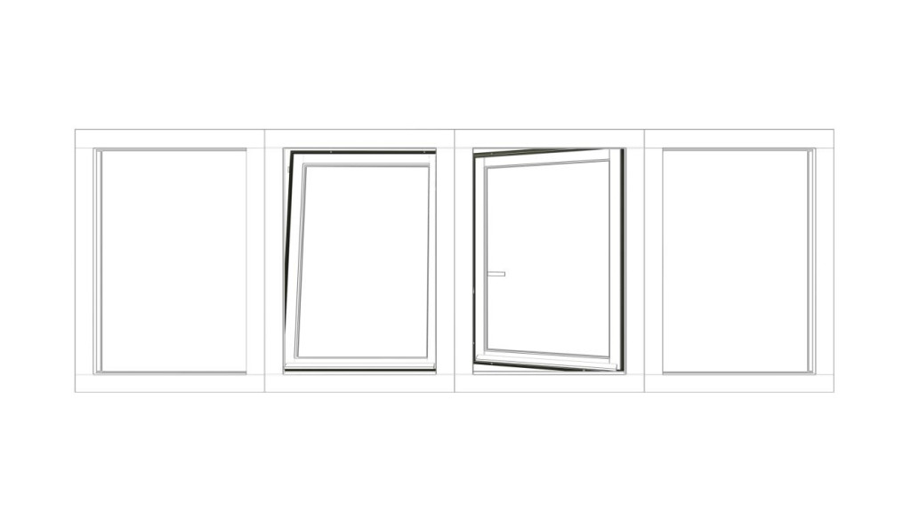 Combinatieset Meranti raamkozijn 3096x1074 - Wit - vast + 2x draai/kiep (LD+RD) + vast
