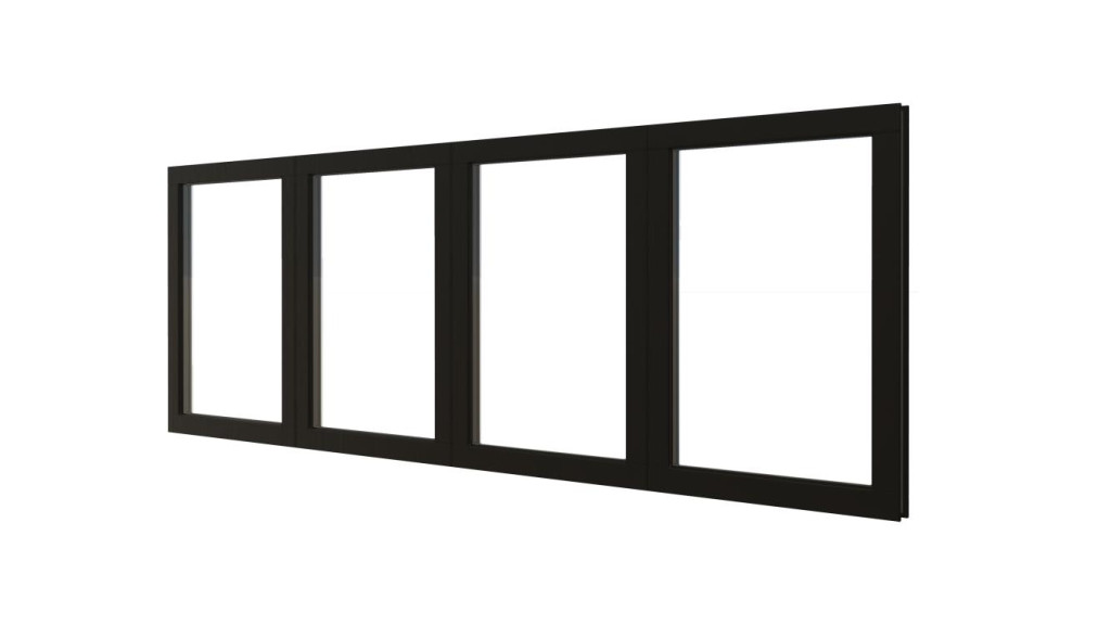Combinatieset Meranti raamkozijn 3096x1074 - Zwart - 4x vast