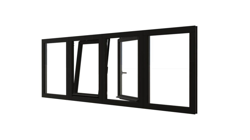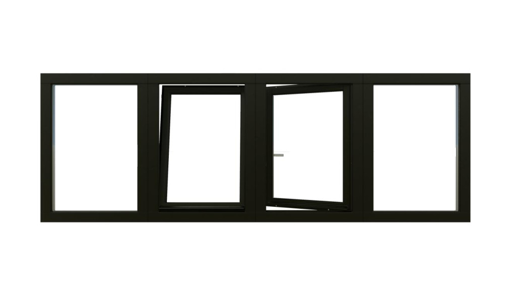 • Combinatieset Meranti raamkozijn 3096x1074 - Zwart - vast + 2x draai/kiep (LD+RD) + vast