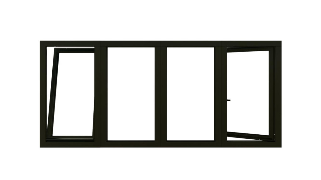 Combinatieset Meranti raamkozijn 3096x1374 - Zwart - draai/kiep (LD) + 2x vast + draai/kiep (RD)