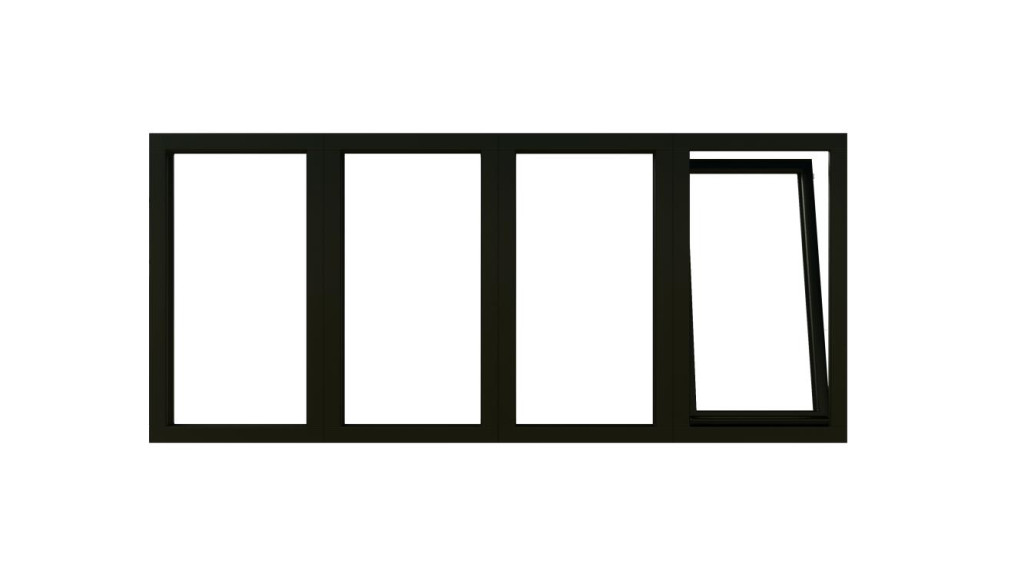 Combinatieset Meranti raamkozijn 3096x1374 - Zwart - draai/kiep (LD) + 3x vast