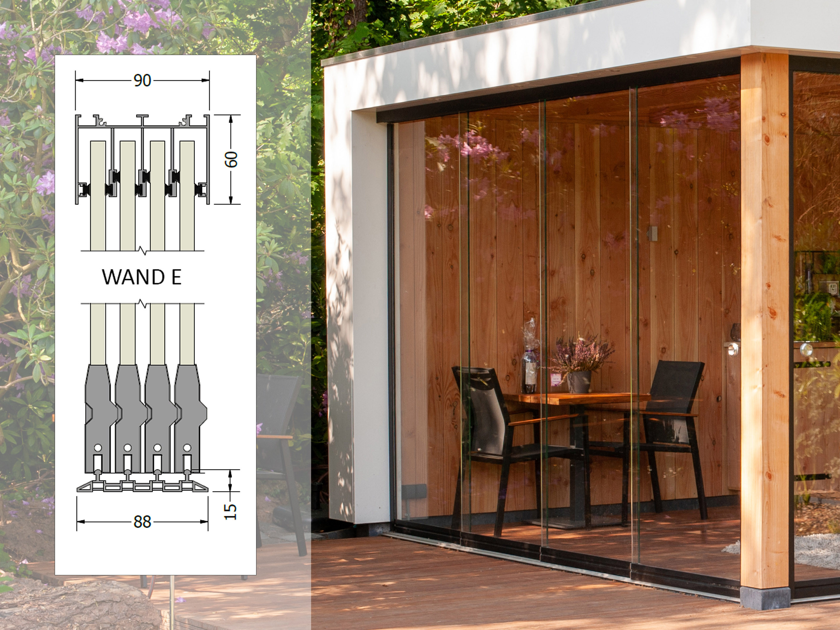 Glazen schuifwandenGlazen schuifwanden B t/m E + overige afmetingen (naar links schuivend)