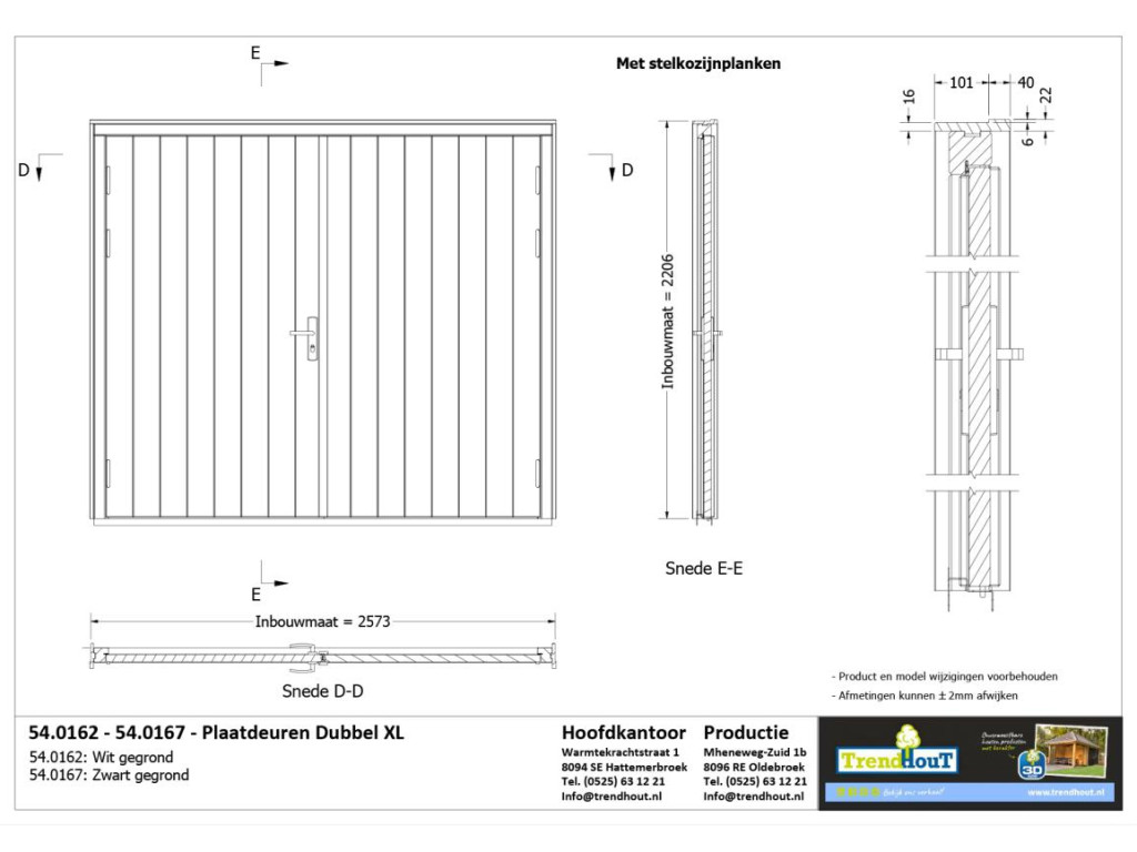 • Plaatdeur dubbel XL 2 deuren 1200x2115 + kozijn 2539x2189mm Zwart (incl. hang en sluitwerk)