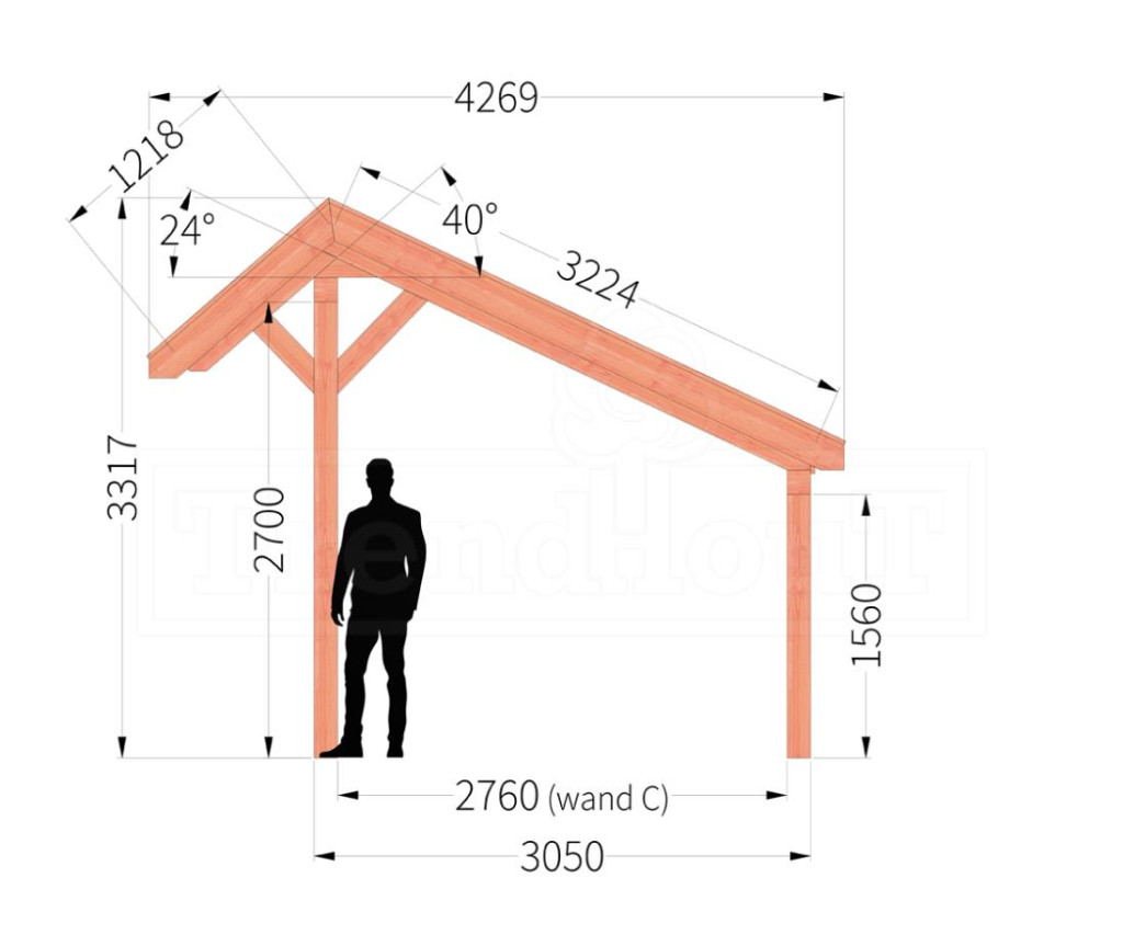 Deze kapschuur is als bouwpakket samengesteld en het laten opbouwen door Trendhout is een optie.