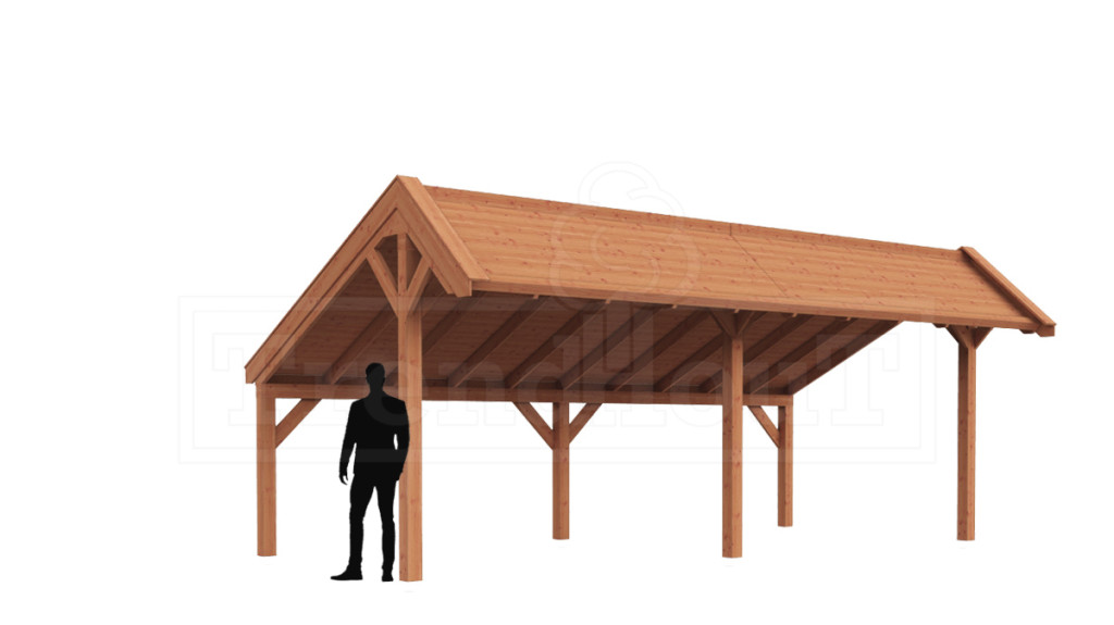 Kapschuur De Heerd is een kapschuur met een sporenkap. Het grote overstek aan de voorzijde geeft deze kapschuur zijn typische en kenmerkende uitstraling. De kapschuur is uitgevoerd met robuuste 145x145mm staanders en ringbalken. De constructie is snel te monteren, o.a. door de op lengte afgekorte onderdelen.