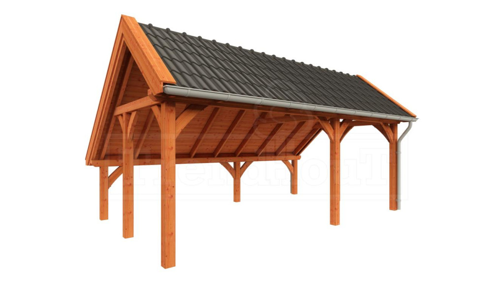 Kapschuur De Hoeve XL is een premium kapschuur met sporenkap. De constructie is snel en gemakkelijk op te bouwen, o.a. door de voorgeboorde schroefgaten en op lengte afgekorte onderdelen, en doordat er zwaluwstaartverbindingen zijn toegepast. De voorgeboorde schroefgaten kunnen keurig worden afgewerkt met de bijgeleverde houten doken. De getoogde schoren en het asymmetrische dak geven de kapschuur zijn landelijke uitstraling.