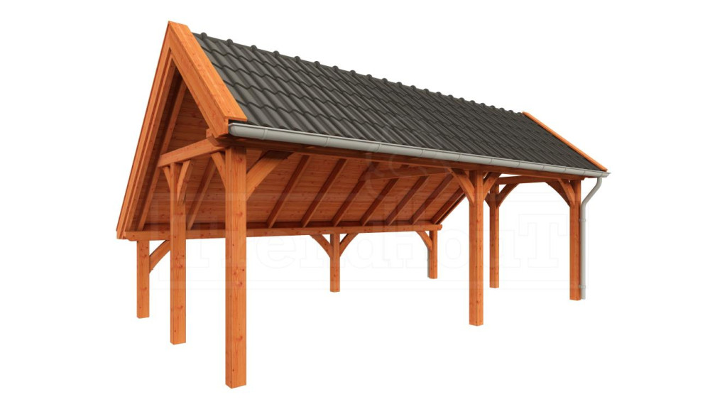 Deze kapschuur is als bouwpakket samengesteld en het laten opbouwen door Trendhout is een optie.