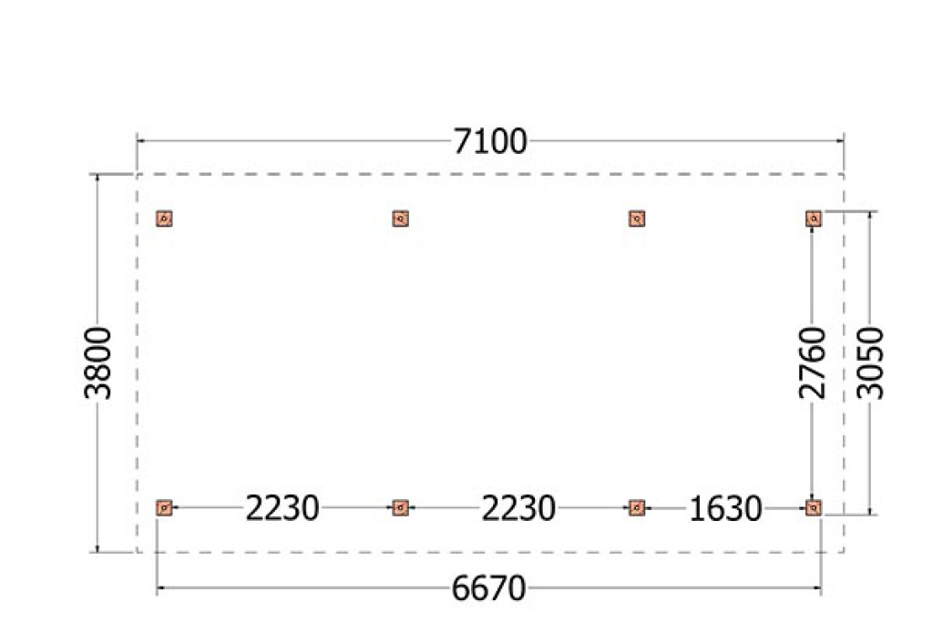 • Dakconstructie: sporenkap met sporen 65x145mm