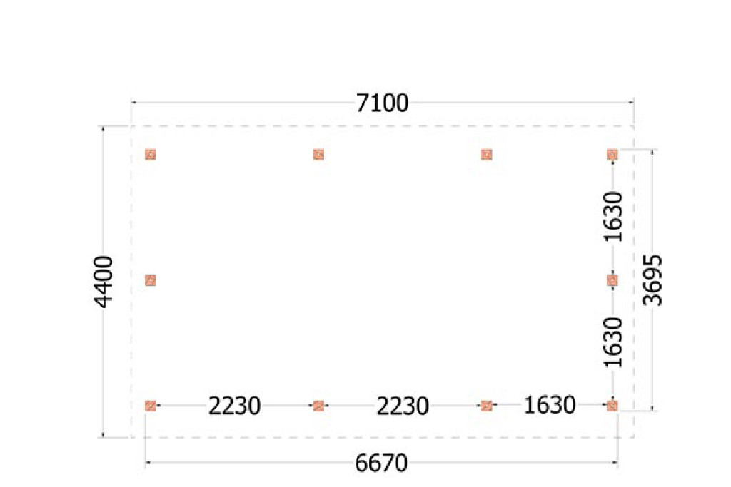 • Dakconstructie: sporenkap met sporen 65x145mm