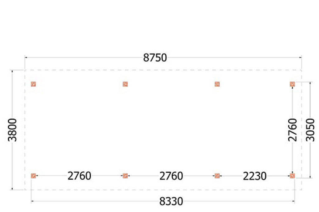 • Dakconstructie: sporenkap met sporen 65x145mm