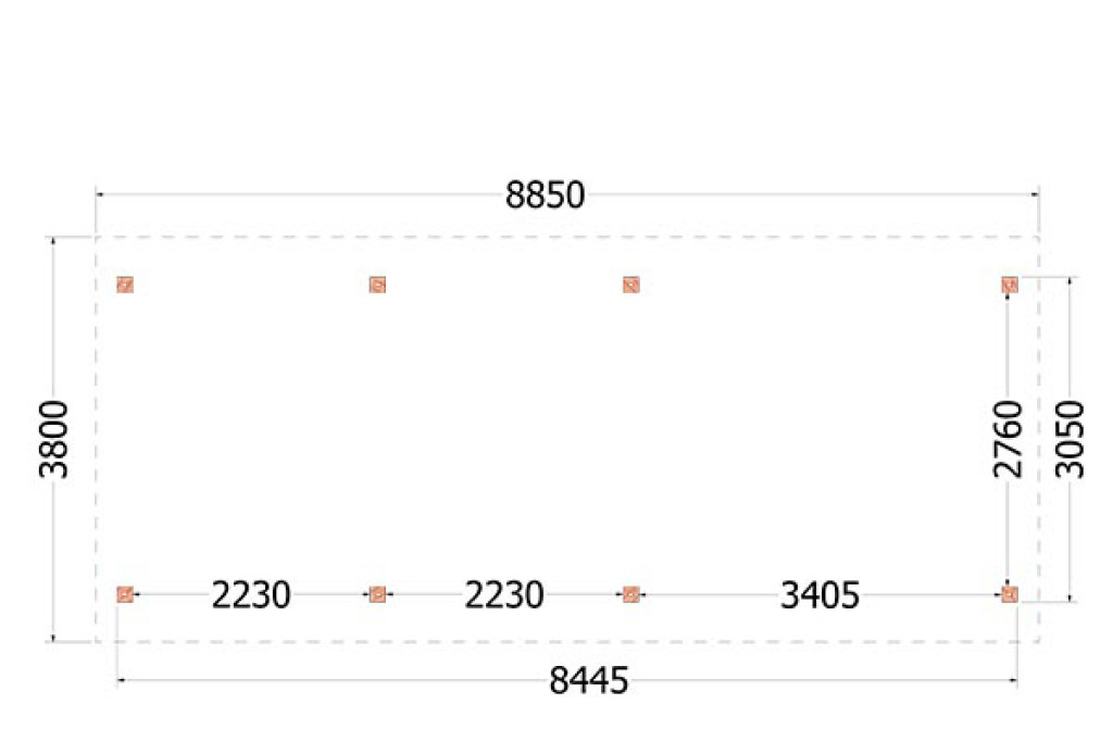 • Dakconstructie: sporenkap met sporen 65x145mm
