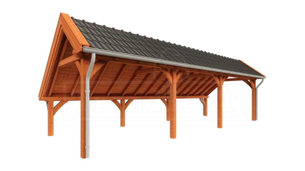 Kapschuur De Hoeve XL is een premium kapschuur met sporenkap. De constructie is snel en gemakkelijk op te bouwen, o.a. door de voorgeboorde schroefgaten en op lengte afgekorte onderdelen, en doordat er zwaluwstaartverbindingen zijn toegepast. De voorgeboorde schroefgaten kunnen keurig worden afgewerkt met de bijgeleverde houten doken. De getoogde schoren en het asymmetrische dak geven de kapschuur zijn landelijke uitstraling.