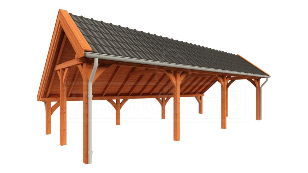 Kapschuur De Hoeve XL is een premium kapschuur met sporenkap. De constructie is snel en gemakkelijk op te bouwen, o.a. door de voorgeboorde schroefgaten en op lengte afgekorte onderdelen, en doordat er zwaluwstaartverbindingen zijn toegepast. De voorgeboorde schroefgaten kunnen keurig worden afgewerkt met de bijgeleverde houten doken. De getoogde schoren en het asymmetrische dak geven de kapschuur zijn landelijke uitstraling.