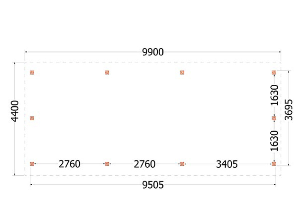 • Dakconstructie: sporenkap met sporen 65x145mm