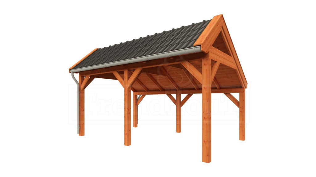 Deze kapschuur is als bouwpakket samengesteld en het laten opbouwen door Trendhout is een optie.