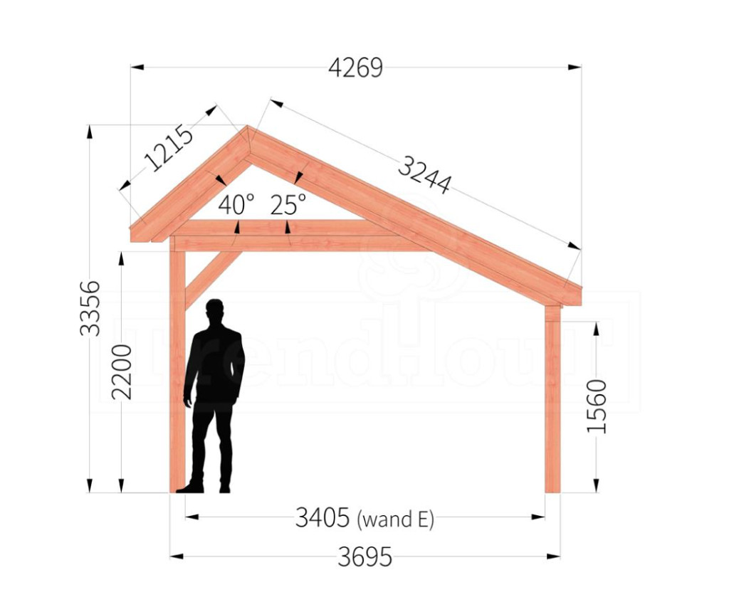 Deze kapschuur is als bouwpakket samengesteld en het laten opbouwen door Trendhout is een optie.