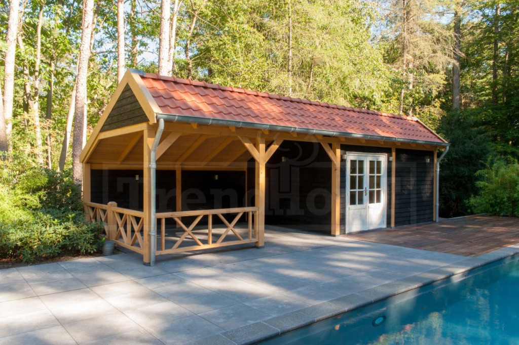 Deze kapschuur is als bouwpakket samengesteld en het laten opbouwen door Trendhout is een optie.