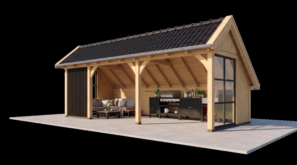 Kapschuur De Veste is een karaktervolle eiken kapschuur met een traditionele sporenkap. De robuuste eiken constructie, gecombineerd met de getoogde klassieke schoren, zorgt voor een stoere en authentieke uitstraling. De geschaafde afwerking geeft het geheel een verfijnde, ambachtelijke look die perfect past in zowel landelijke als exclusieve buitenomgevingen.