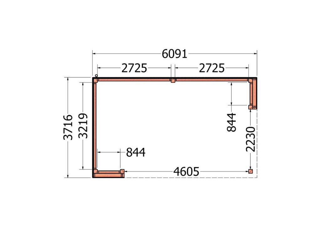 Ontdek Buitenverblijf Capri 6100x3750x2550mm (bxdxh) model links alleen constructie