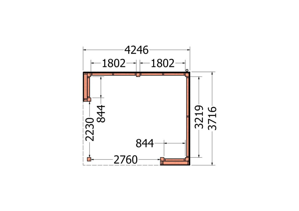 Douglas overkappingen met een plat dak Capri – Buitenverblijf plat dak Buitenverblijf Capri Rechts – 4250x3750x2550
