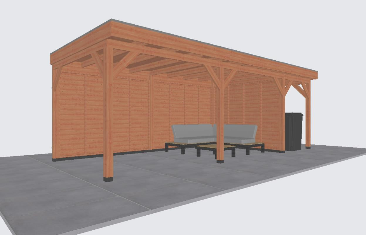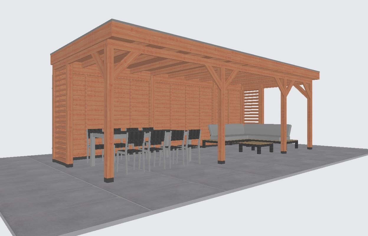 Buitenverblijf Casa is het instapmodel buitenverblijf met plat dak, strak vormgegeven met aan de voorzijde een overstekend dak. De constructie is op een minimalistische manier opgebouwd met 120x120mm staanders,deze is snel te monteren door bijvoorbeeld de op lengte afgekorte onderdelen.