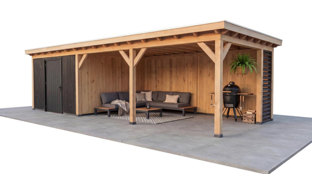 Douglas overkappingen met een plat dak Eiken overkapping Ravenna Landelijk 10000x4100x2600