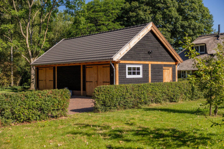 Dit buitenverblijf is als bouwpakket samengesteld en het laten opbouwen door Trendhout is een optie.