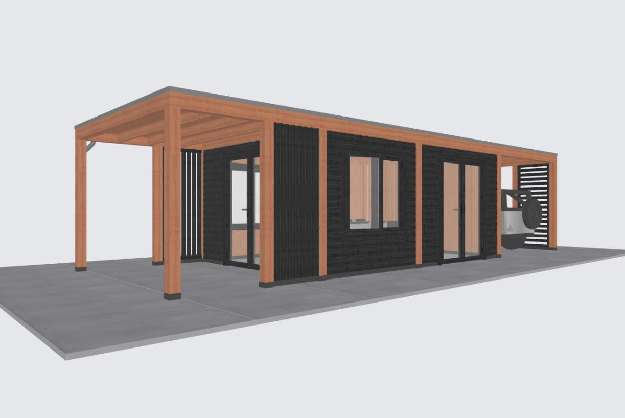 Dit buitenverblijf is als bouwpakket samengesteld en het laten opbouwen door Trendhout is een optie.